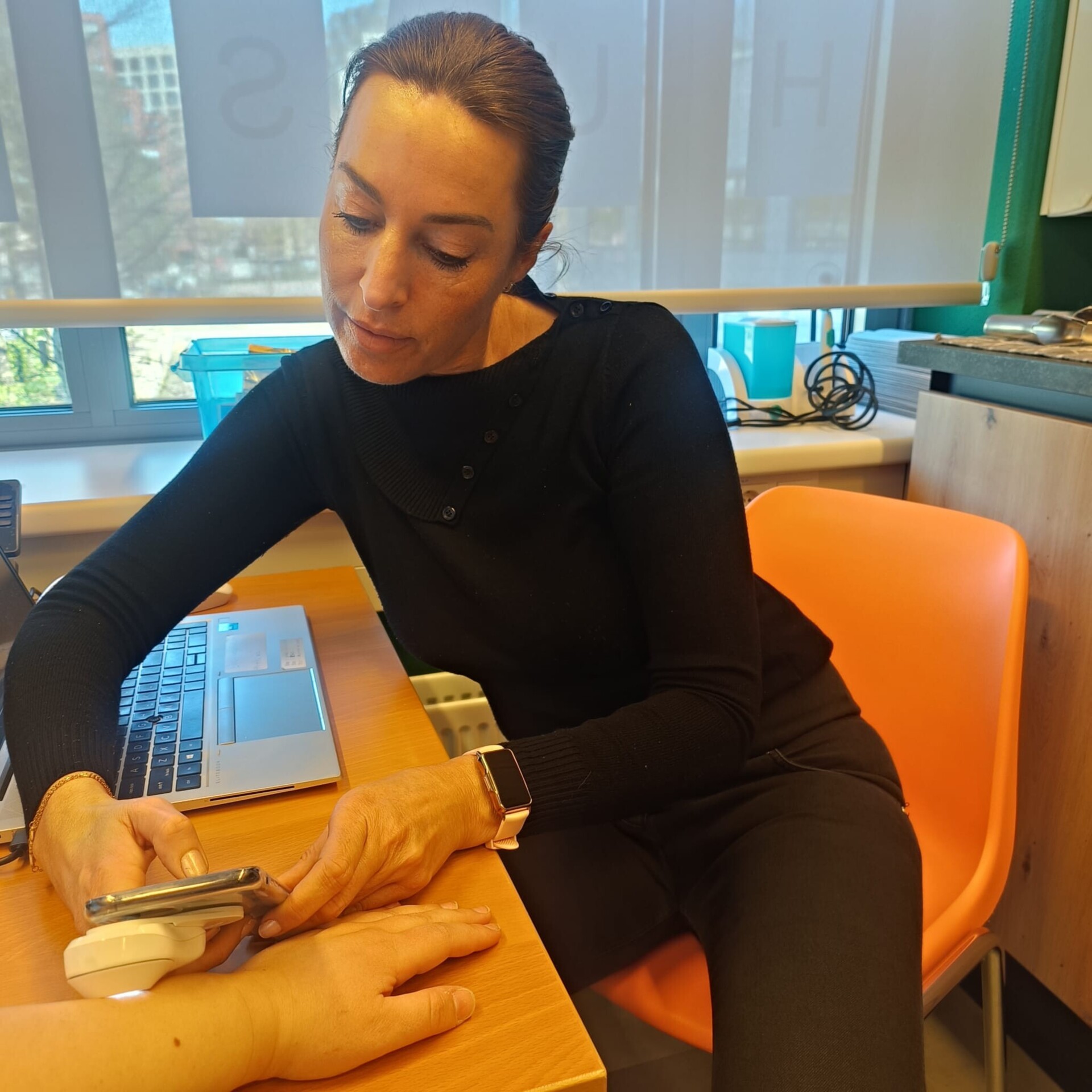 Tijdens het huidspreekuur maakt de assistente een foto van één verdacht plekje met een dermatoscoop. Dit is een speciaal apparaat met verlichting en vergroting waarmee huidplekken gedetailleerd vastgelegd kunnen worden. De foto wordt via Ksyos doorgestuurd naar een dermatoloog, die de beoordeling uitvoert. Zo krijgt u altijd een deskundig advies.